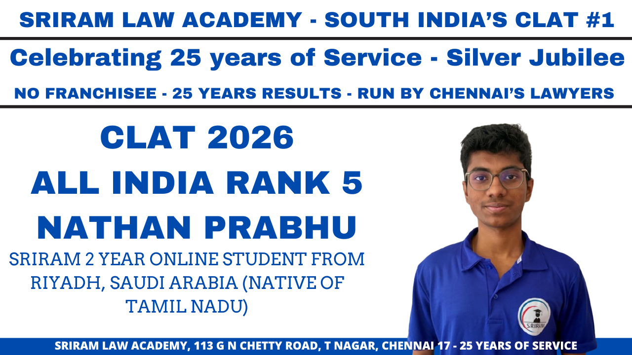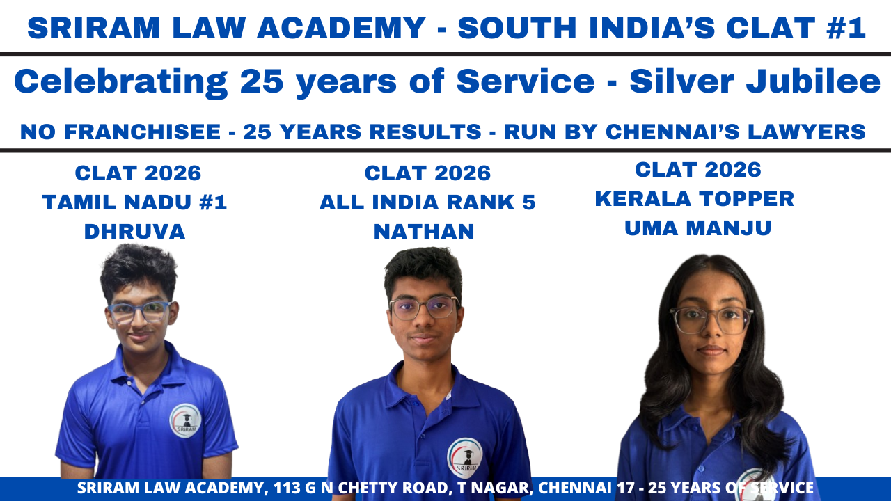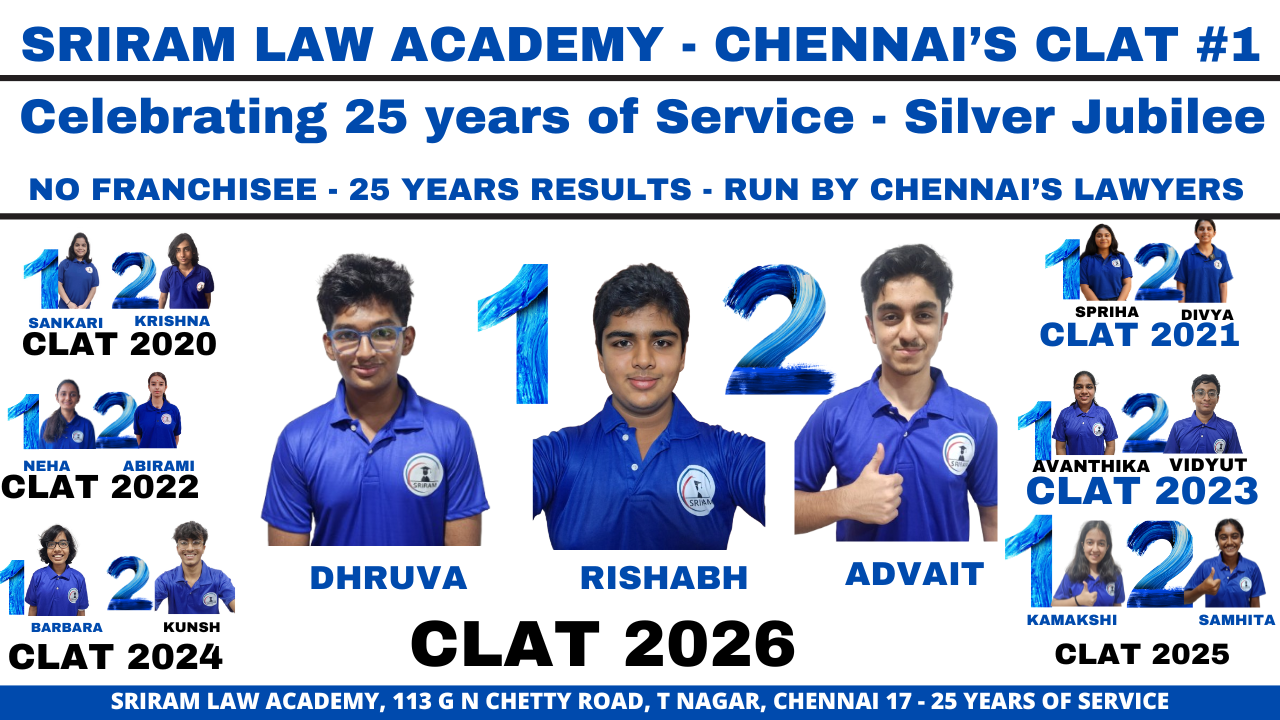 2016 – Four of the top ten CLAT ranks are from Sriram: